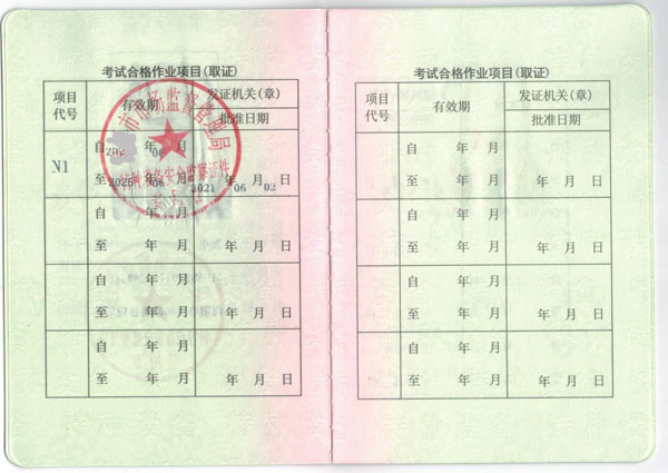 叉車司機-叉車證N1,電梯維修T,特種安全設備管理A,起重機指揮Q1,Q2起重司機(限門座式起重機),Q2起重司機(限橋式起重機),Q2起重司機(限門式起重機),Q2起重司機(限纜索式起重機),Q2起重司機(限塔式起重機)Q2起重司機(限流動式起重機)Q2起重司機(限升降機),觀光和觀光列出司N2,壓力容器壓力管道管理A,電梯管理A,起重機械管理A,場(廠)內專用機動車輛管理A,工業鍋爐司爐G1,電站鍋爐司爐G2,鍋爐水處理G3,快開門式壓力容器操作R1,移動式壓力容器充裝R2,氣瓶充裝P,金屬焊接操作-壓力焊PE焊,非金屬焊接操作-壓力容器焊,食品檢驗員,化學檢驗員,農產品檢驗員(4年一審,需要到期前3個月進行)從事特殊工種作業人員必須熟悉相應特殊工種作業的安全知識及防范各種意外事故的技能。要求從業人員持卡上崗,即由國家安全生產監督管理局頒發《中華人民共和國特種作業操作證》方可上崗。