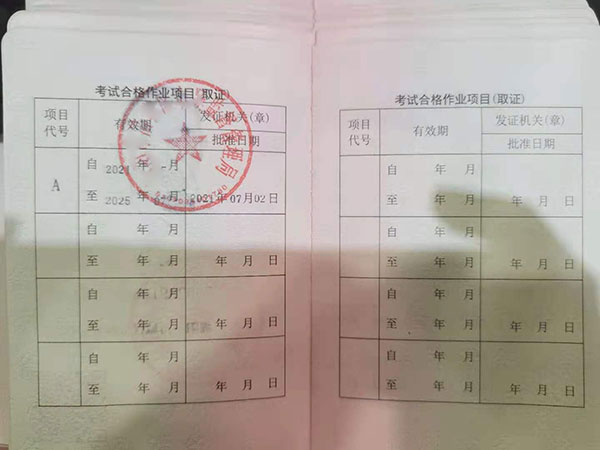 (4年復審一次,需要到期前3個月進行)從事特殊工種作業人員必須熟悉相應特殊工種作業的安全知識及防范各種意外事故的技能。要求從業人員持卡上崗,即由國家安全生產監督管理局頒發《中華人民共和國特種作業操作證》方可上崗。
