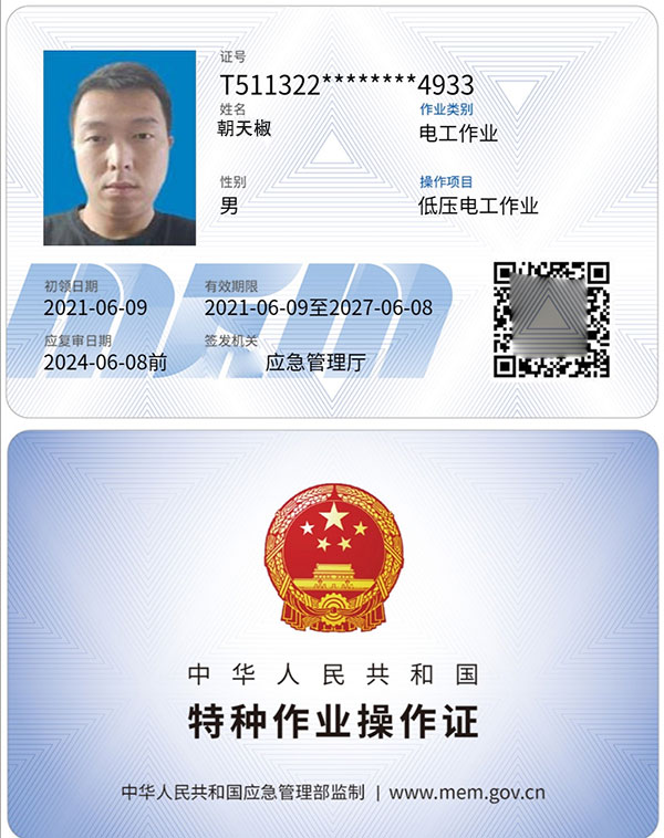 《特種作業(yè)證書展示》