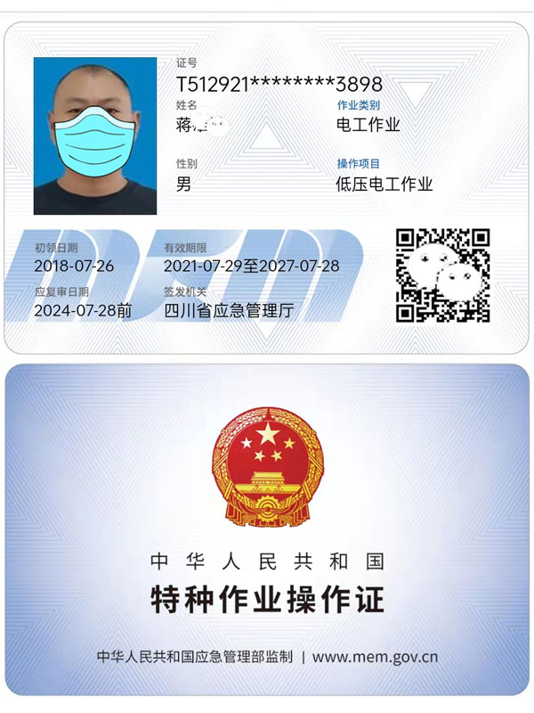 應急管理局-電工證樣板