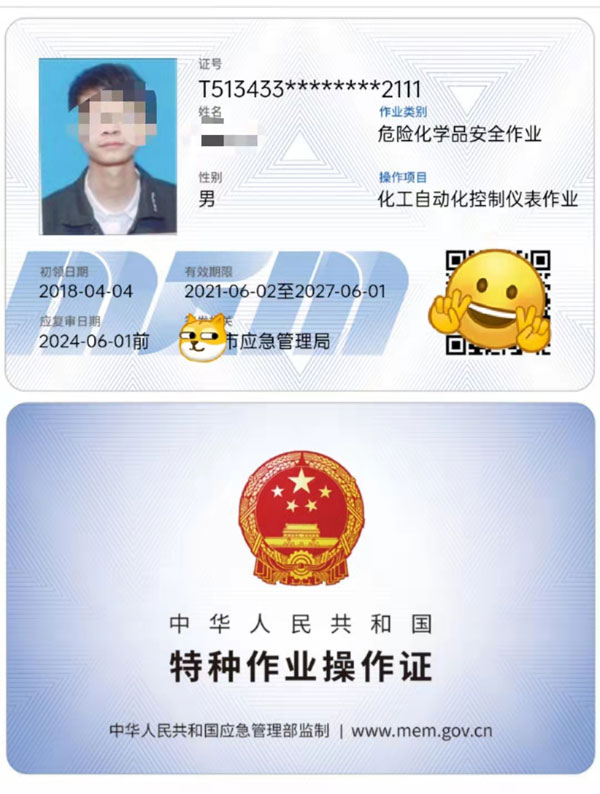 應急管理局危化品作業證:過氧化工藝,烷基化工藝,氧化工藝,加氫工藝,化工自動化控制儀表作業;