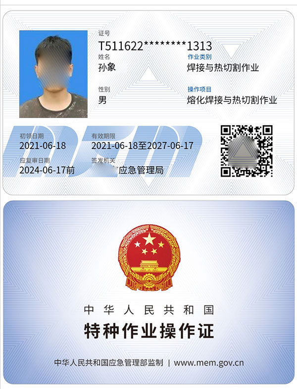焊工操作證也稱為焊工上崗證,是由各省應急管理局,頒發的,像身份證一樣大小,是IC卡形式的。焊工操作證是焊工作業必須持有的證件,具有極強的法律效應,也就是說,如果焊工在某個單位任職,如果遇到相關部門進行安全檢查,一旦查出沒有焊工操作證卻從事相關工作,不僅會被開除,還要追究單位的責任,尤其是當發生安全事故時,沒有證書就會處于劣勢。