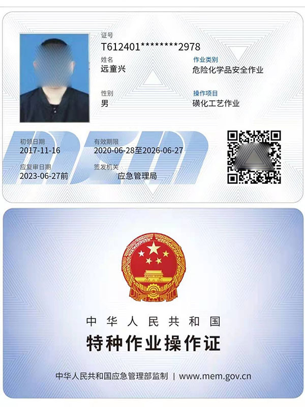 一、危險(xiǎn)化學(xué)品安全作業(yè)證,1,化工自動(dòng)化控制儀表作業(yè),2,過氧化工藝作業(yè),3,烷基化工藝作業(yè),4,氧化工藝作業(yè),5,加氫工藝作業(yè),從業(yè)人員上崗證,特種作業(yè)證是3年一審